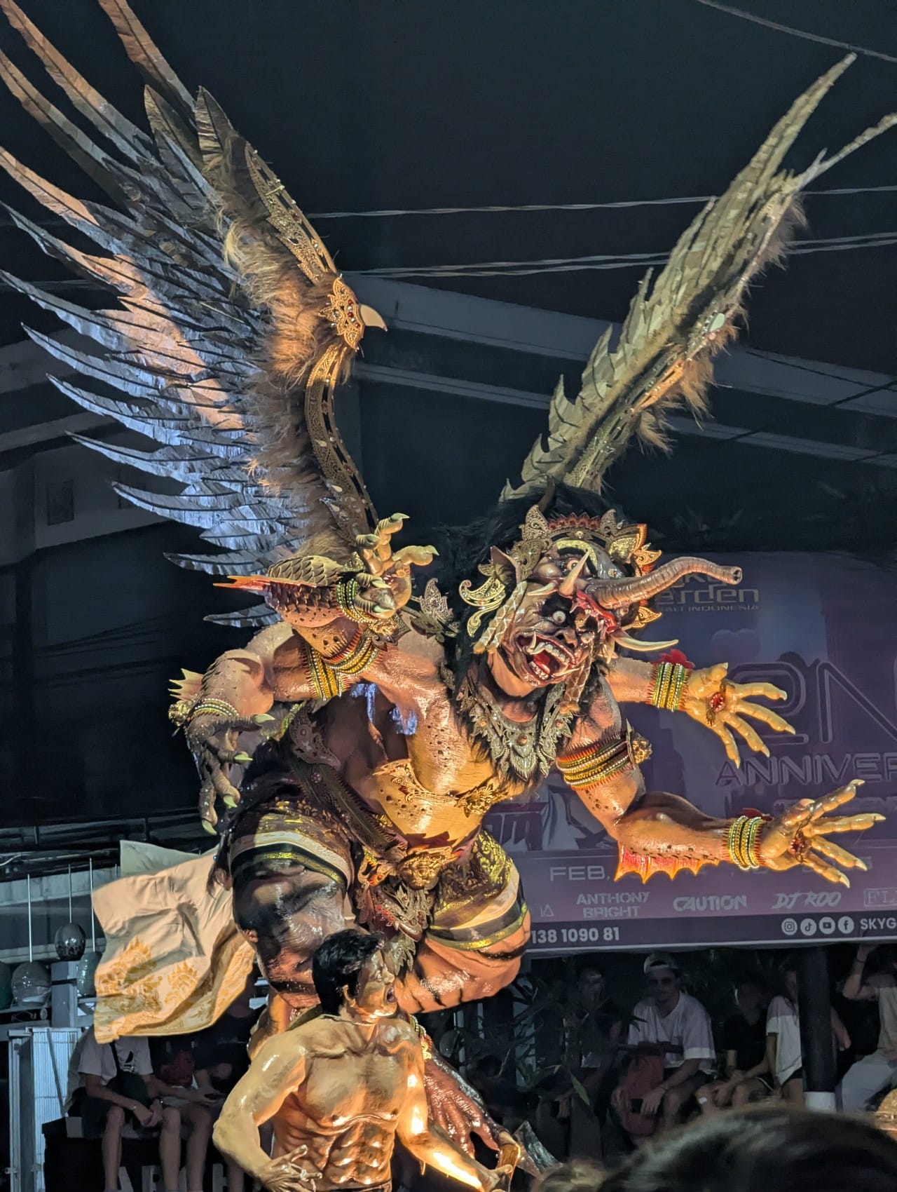 We were lucky enough to be there during Nyepi - the Balinese holiday for new years. This includes the Day of Silence, and the Ogoh-Ogoh parade. The parade includes hand-crafted monsters representing evil spirits, with large groups of people chanting while carrying and spinning them through the crowd.