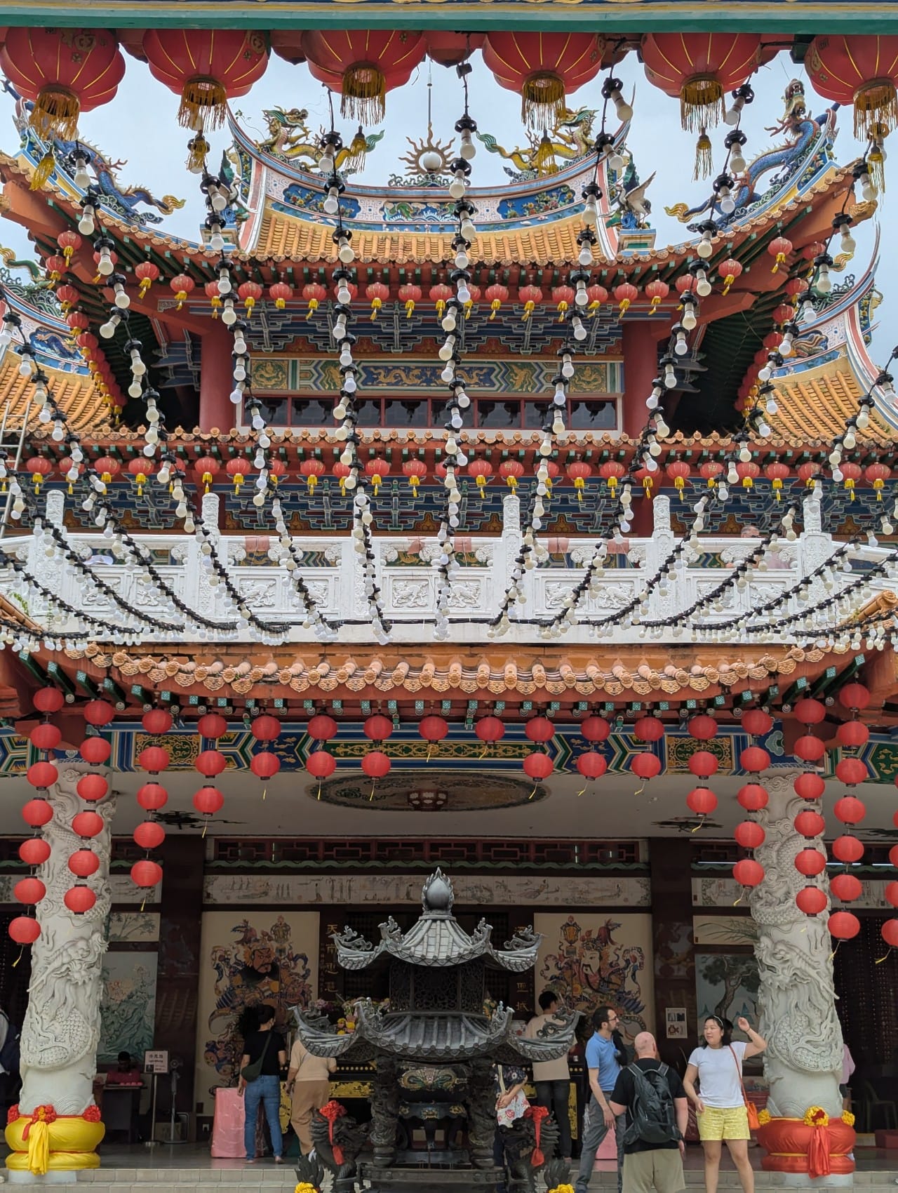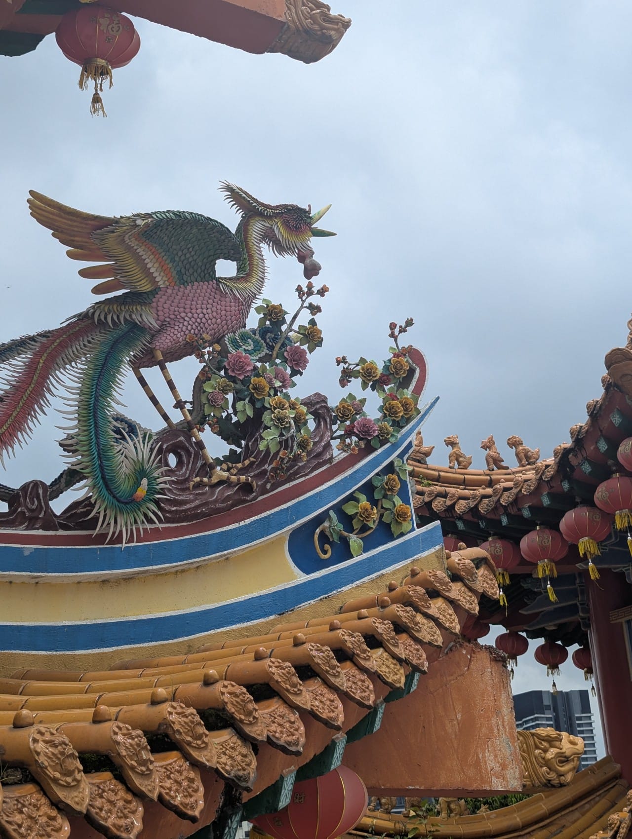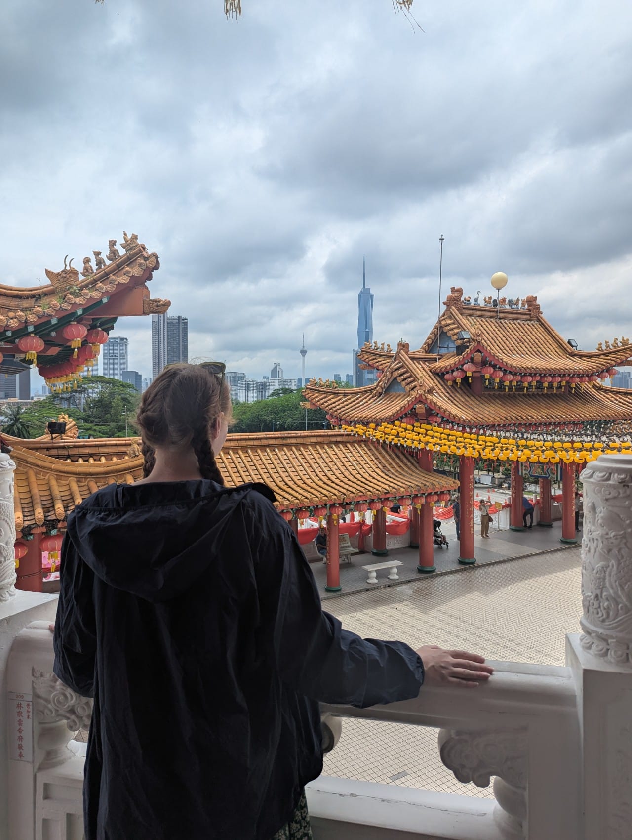 Next was heading to Thean Hou Temple - a Buddhist temple. Incredible dramatic and vibrant carved details, many corners with outward facing dragons and traditional red hanging lanterns adorning the site. Expansive views of the city, from here you can see Warisan Merdeka.