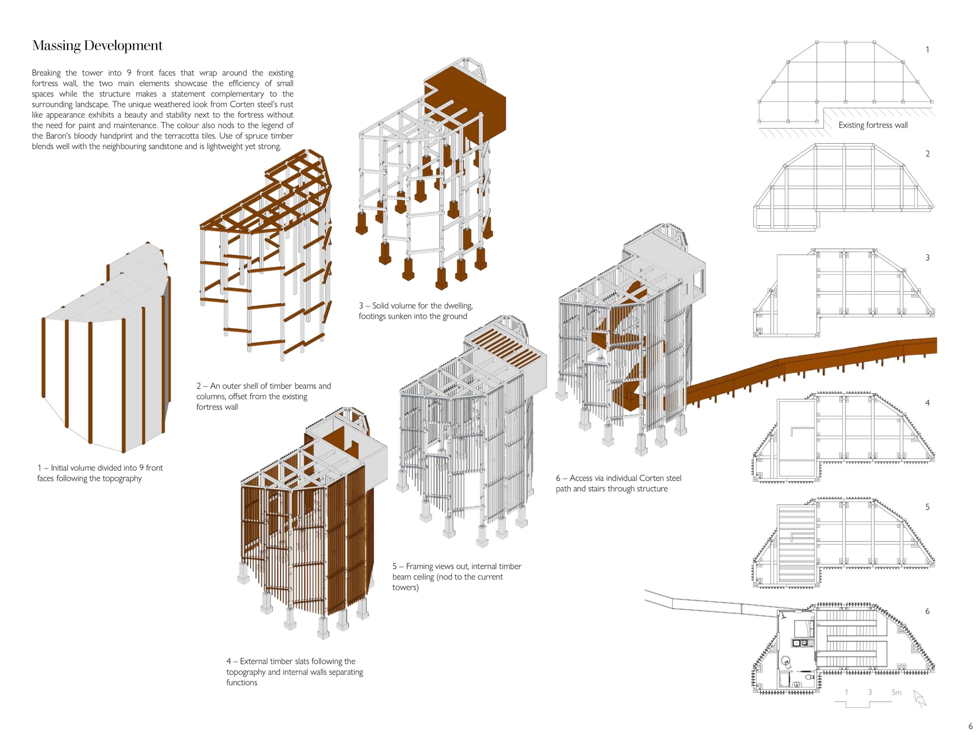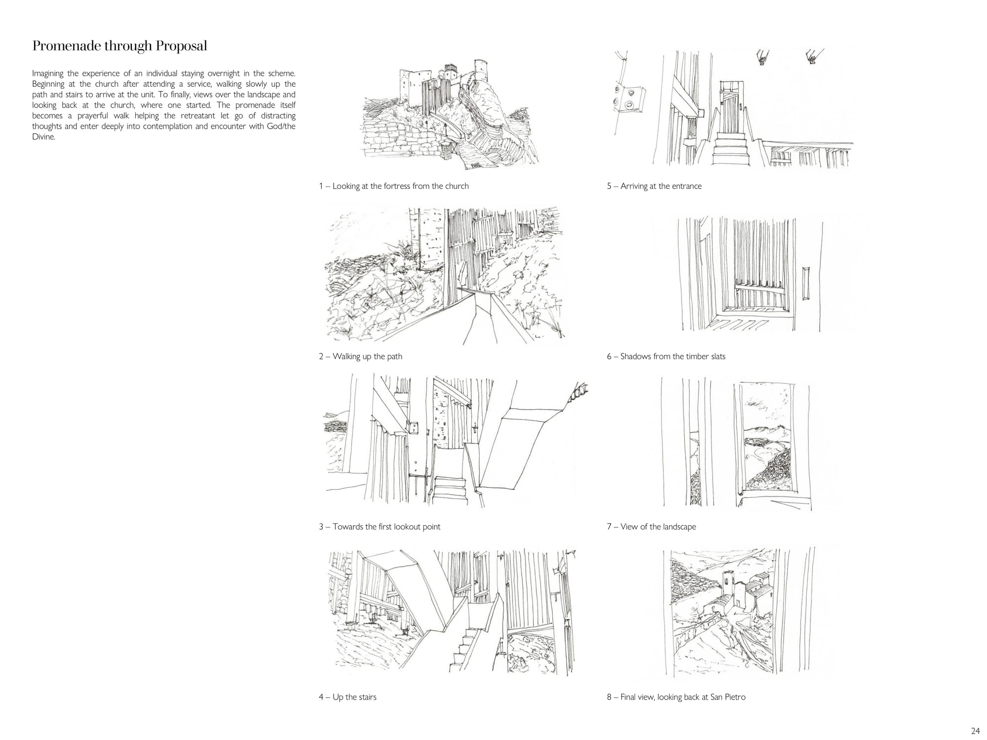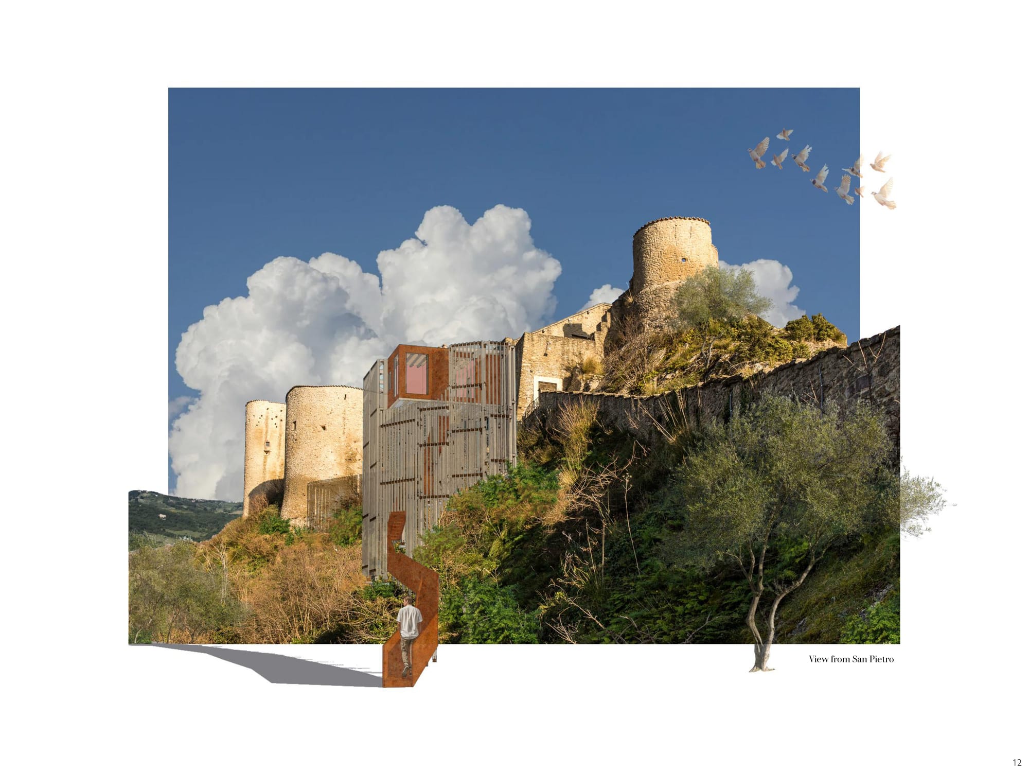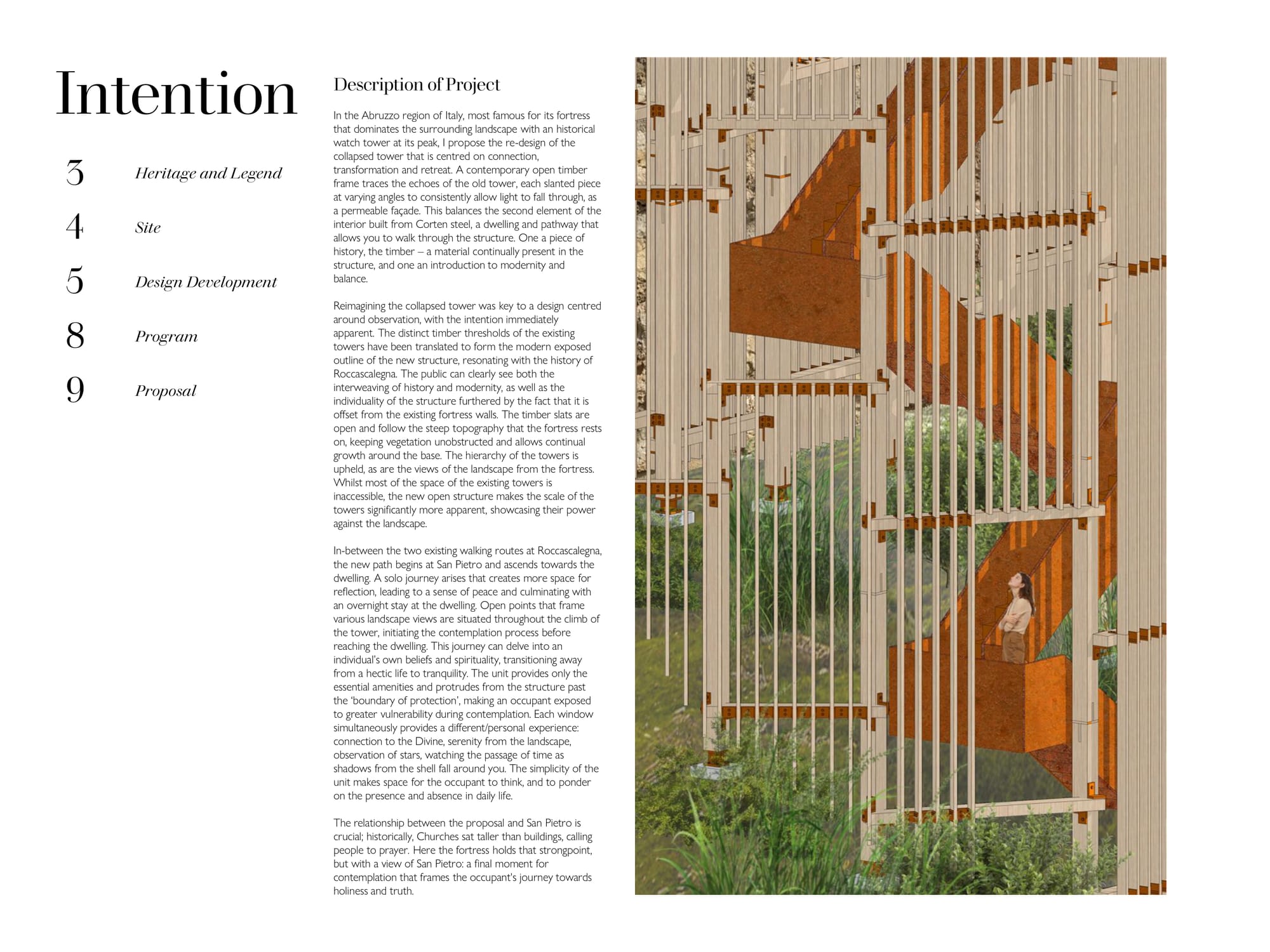 Starting and completing this project over the span of two weeks, the brief was to design a solitary observatory dwelling (approx. 20–25 sqm) located in visual dialogue with the fortress of Roccascalegna. The unit should offer a temporary overnight stay experience centered around silence, observation, and contemplation, integrating architectural sensitivity with the mystical character of the site. The project must reflect a careful balance between heritage respect, landscape integration, and experiential quality. Particular attention should be given to light, materiality, and symbolism, ensuring the dwelling becomes a quiet yet meaningful addition to the cultural and environ mental narrative of the fortress.