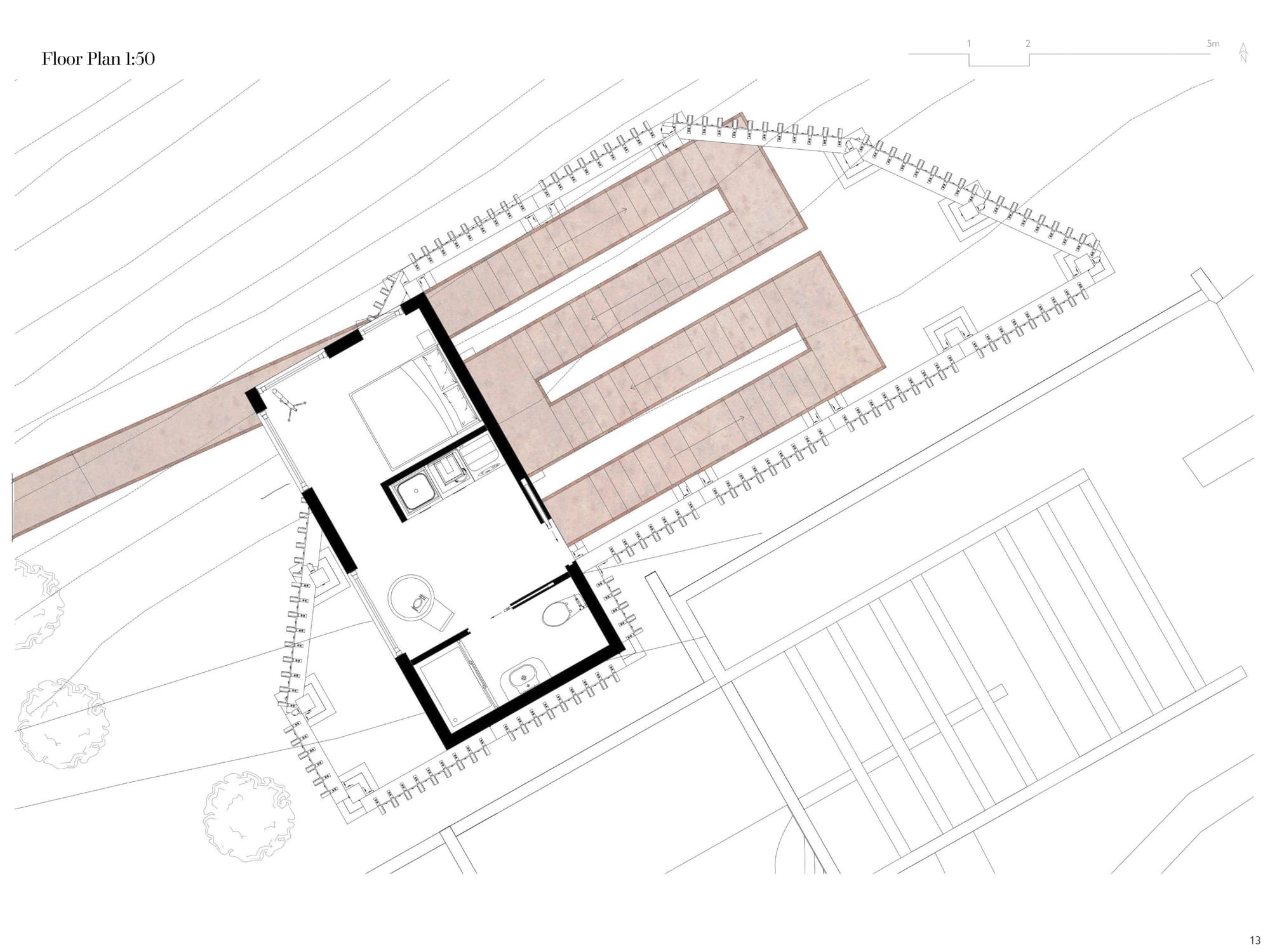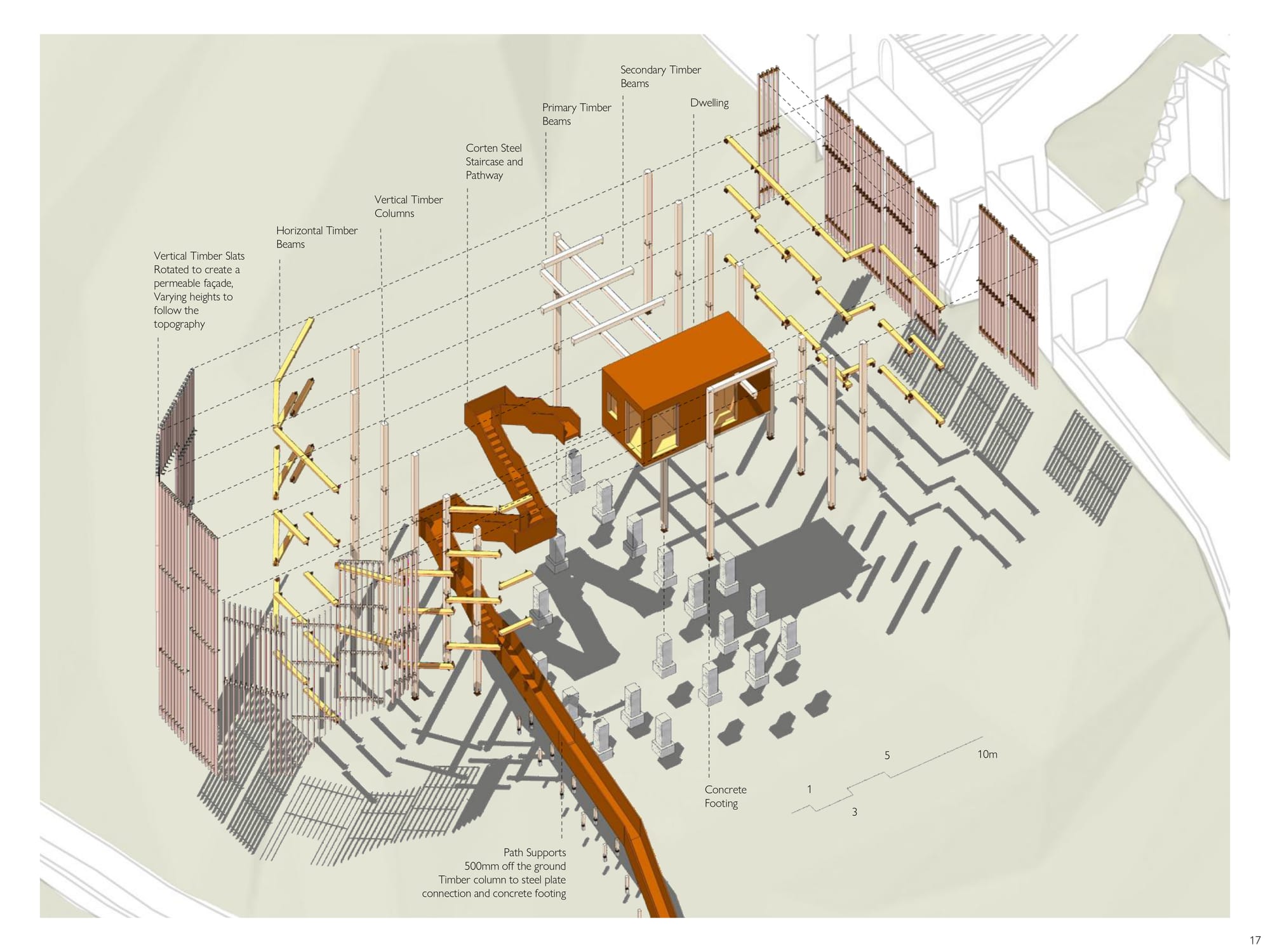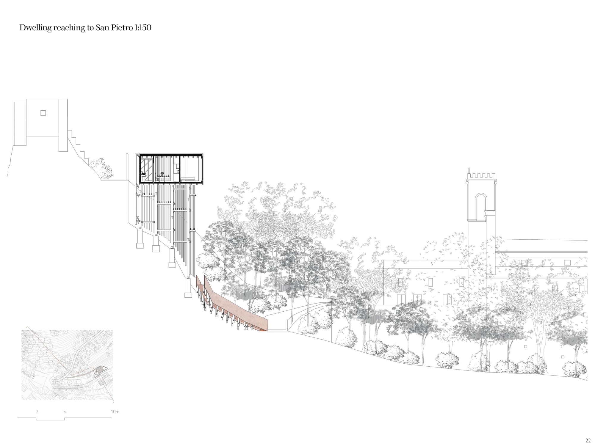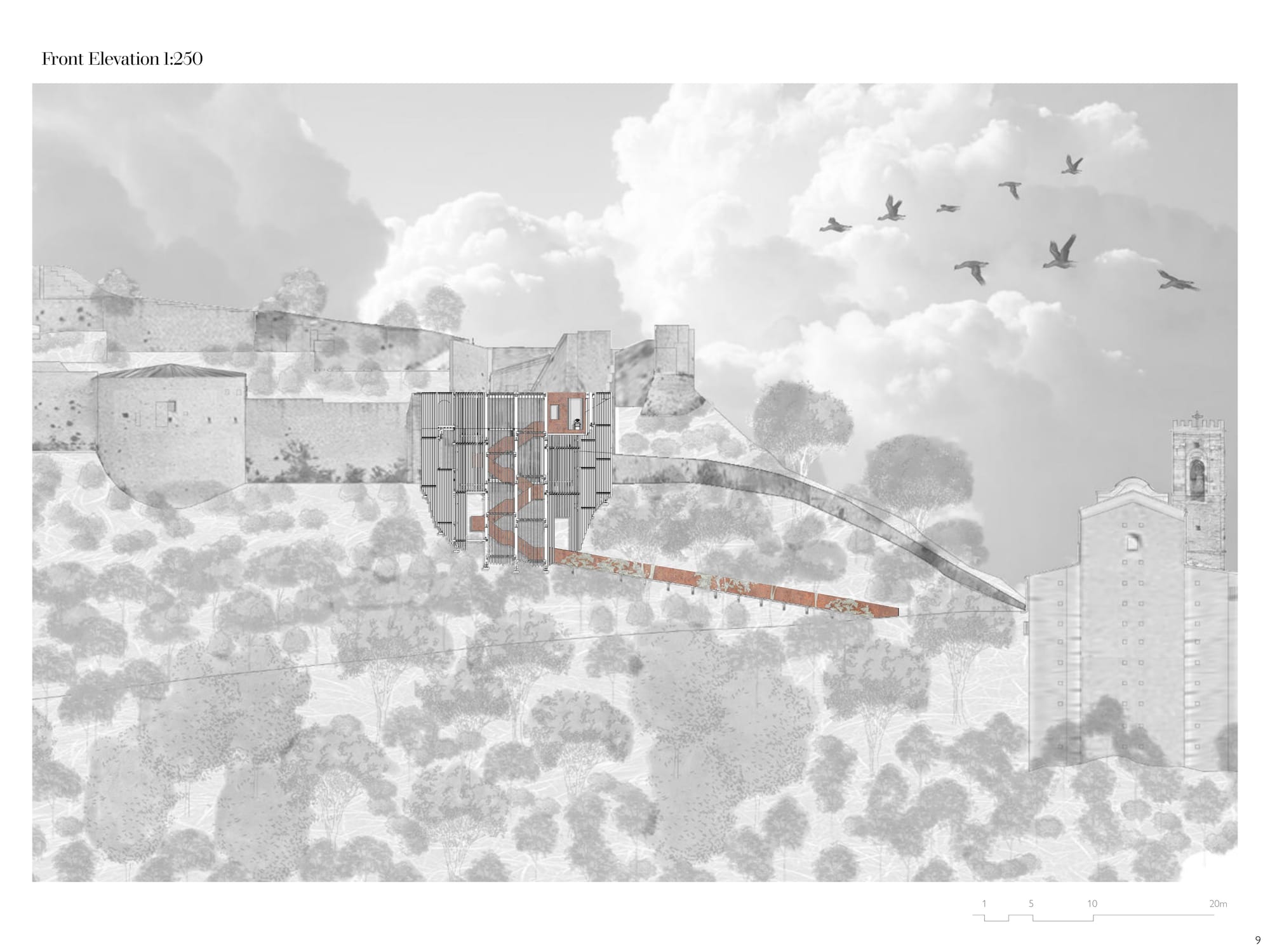 Starting and completing this project over the span of two weeks, the brief was to design a solitary observatory dwelling (approx. 20–25 sqm) located in visual dialogue with the fortress of Roccascalegna. The unit should offer a temporary overnight stay experience centered around silence, observation, and contemplation, integrating architectural sensitivity with the mystical character of the site. The project must reflect a careful balance between heritage respect, landscape integration, and experiential quality. Particular attention should be given to light, materiality, and symbolism, ensuring the dwelling becomes a quiet yet meaningful addition to the cultural and environ mental narrative of the fortress.